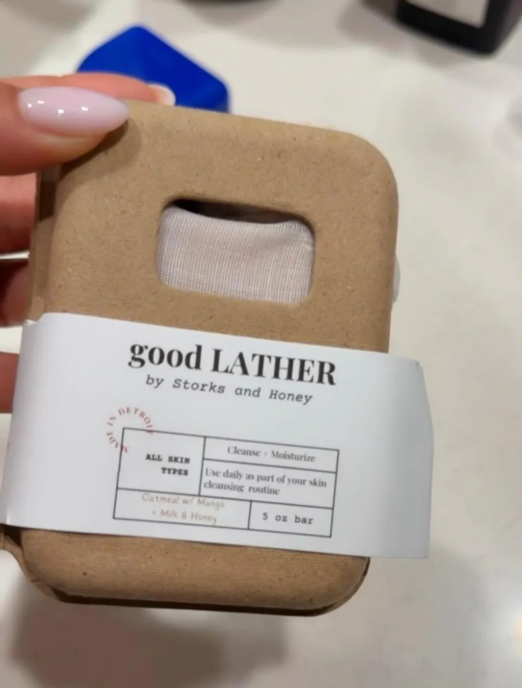Clean skin starts with a GOOD lather. Hand- poured in small batches with skin- loving ingredients that care for you- naturally. Made with colloidal oatmeal to calm dryness & irritation + enriched with Manuka honey to deeply moisturize & support a healthy skin barrier. Lovely mango scent.